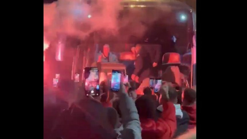 Εκατοντάδες φίλοι των πρωταθλητών Ελλάδας, ανάμεσα τους και ο Γιώργος Αγγελόπουλος, βρέθηκαν στον περιβάλλοντα χώρο του ΣΕΦ για να υποδεχθούν την «ερυθρόλευκη» αποστολή, αποθεώνοντας τον Γιώργο Μπαρτζώκα και τους παίκτες του.