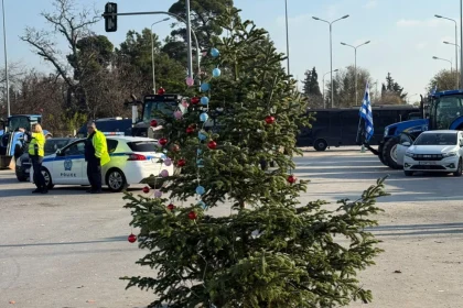Ένα φυσικό έλατο στόλισαν οι αγρότες στο μπλόκο των «Πράσινων Φαναριών», στην ανατολική Θεσσαλονίκη, στέλνοντας μήνυμα ότι θα παραμείνουν στις…