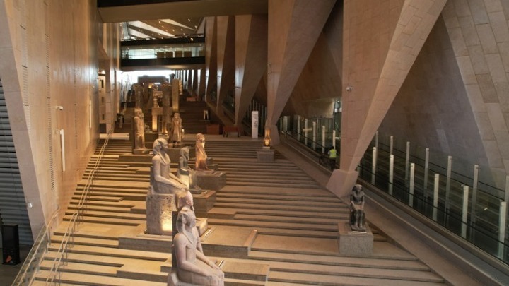 Όταν το μουσείο ανοίξει για το κοινό την Τρίτη, τους επισκέπτες θα υποδέχεται στο τεράστιο αίθριο το πιο μνημειώδες άγαλμα του μουσείου – 83 τόνοι γρανίτη, ύψους έντεκα μέτρων – που αναπαριστά τον Ραμσή Β΄, τον Φαραώ που βασίλευσε στην Αίγυπτο για 66 χρόνια πριν από περισσότερα από 3.000 χρόνια.