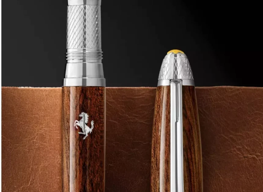Το στυλό από πολυτελές ξύλο μαόνι είναι εμπνευσμένο από τα τιμόνια των σπορ αυτοκινήτων Ferrari Gran Turismo, διαθέτει μαύρα λακαριστά στοιχεία και λεπτομέρειες πλατίνας, και παραπέμπει στο φινίρισμα χρωμίου των κλασικών Ferrari.