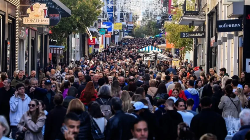 Κοσμοσυρροή παρατηρείται στην Ερμού από το πρωί της Κυριακής (30.11.25) καθώς τα καταστήματα θα παραμείνουν ανοιχτά μέχρι τις 18:00 το απόγευμα.