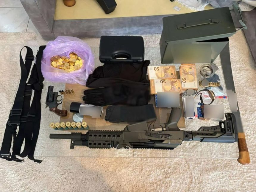 - 12 κινητά τηλέφωνα, 3 αορτήρες, κουκούλα full-face, γάντια, χειροπέδες, ματσέτα, 2 ρόπαλα