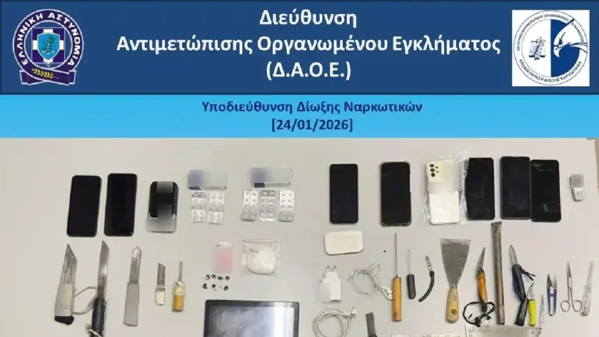 Η επιχείρηση στις φυλακές Μαλανδρίνου έγινε το πρωί του Σαββάτου (24/1/26) από τη Διεύθυνση Αντιμετώπισης Οργανωμένου Εγκλήματος.
