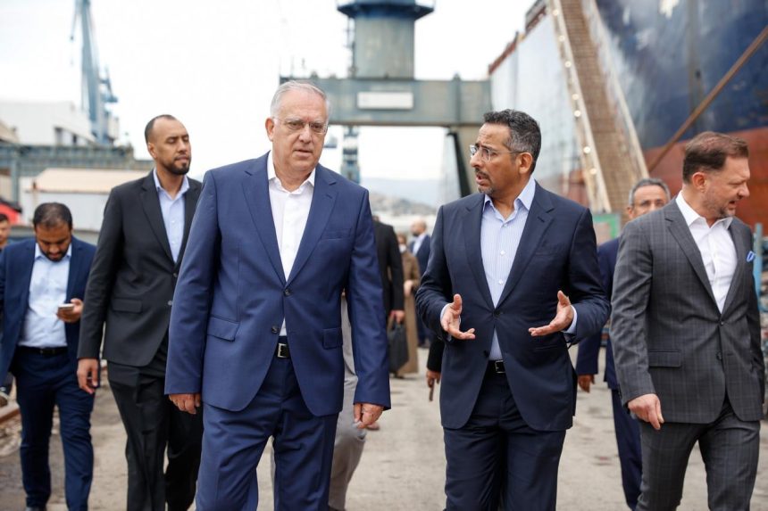 Στη συνέχεια επισκέφτηκαν τα Ναυπηγεία Ελευσίνας, όπου τους υποδέχθηκε ο Πρόεδρος και Διευθύνων Σύμβουλος της ONEX Shipyards & Technologies, Πάνος Ξενοκώστας. Περιηγήθηκαν στις εγκαταστάσεις και ενημερώθηκαν για τις προοπτικές περαιτέρω ανάπτυξης των Ναυπηγείων Ελευσίνας, τις θέσεις εργασίας που δημιουργούνται και συζήτησαν για τις δυνατότητες συνεργασίας με επενδυτικούς φορείς της Σαουδικής Αραβίας στον κρίσιμο τομέα της ναυπηγοβιομηχανίας, αλλά και της αμυντικής βιομηχανίας.