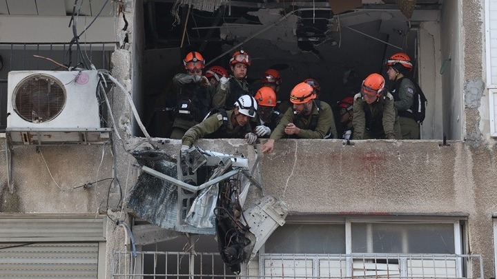 Στην άλλη πλευρά, δημοσιογράφος του Γαλλικού Πρακτορείου άκουσε τις πρώτες πρωινές τουλάχιστον δέκα εκρήξεις στους αιθέρες της Ιερουσαλήμ, αφού οι ισραηλινές ένοπλες δυνάμεις ανακοίνωσαν ότι ενεργοποιήθηκε η αντιαεροπορική άμυνα για να αναχαιτίσει πυραύλους που εκτόξευσε εναντίον της χώρας το Ιράν, κάτι που επιβεβαιώθηκε από την ιρανική κρατική ραδιοφωνία και τηλεόραση IRIB. Σύμφωνα με το Magen David Adom («Κόκκινο άστρο του Δαυίδ», το ισραηλινό αντίστοιχο του Ερυθρού Σταυρού και της Ερυθράς Ημισελήνου), δεν έχουν αναφερθεί τραυματισμοί ως αυτό το στάδιο.